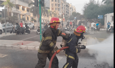 اخمد عناصر من الدفاع المدني مساء اليوم حريقاً شب داخل سيارة في منطقة الجناح في بيروت.