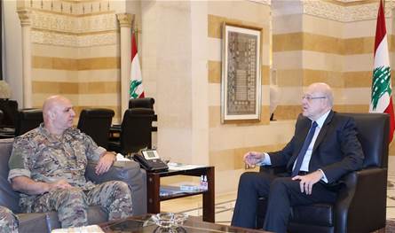 وكتبت” النهار”ان ميقاتي وخلال الاجتماع الجانبي مع الوزراء أبلغهم بأن التمديد لقائد الجيش لن يحصل إلا بالتوافق وهو ليس بوارد الذهاب بالموضوع على قاعدة التحدي. وقالت مصادر وزارية ان رئيس الحكومة ابلغ الوزراء ان الامانة العامة لمجلس الوزراء اعدَّت دراسة قانونية ودستورية موسعة بشأن الحلول القانونية التي يمكن اعتمادها لتفادي الشغور المرتقب في القيادة العسكرية. وأشارت الى ان الامين العام لمجلس الوزراء القاضي محمود مكية أنجز دراسة قانونية دستورية ليل اول من امس تقترح حلولاً للشغور المرتقب في القيادة العسكرية وذلك بناء على تكليف سابق من مجلس الوزراء.