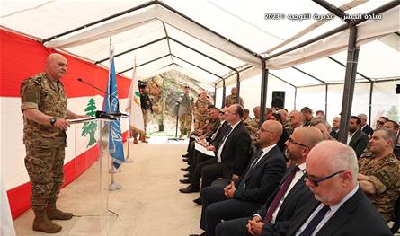 وألقى قائد الجيش كلمة أكد فيها أهمية المشروع على الصعيدين البيئي والصحي نظرًا لخطورة المواد الطبية الناتجة عن المستشفيات، مشيرًا إلى أن القيادة تُخصص جزءًا كبيرًا من قدراتها للجانب الإنمائي من مهماتها، بما في ذلك حماية البيئة والتراث ودعم كل النشاطات المتعلقة بهما. ولفت إلى أن الجيش يضع جميع طاقاته العسكرية واللوجستية والبشرية في خدمة الشأن البيئي ضمن رؤيته الاستراتيجية للمحافظة على البيئة في لبنان، عن طريق إخماد الحرائق ورشّ المبيدات وتنظيف الأماكن الأثرية، وحماية الممتلكات الثقافية وفرز النفايات، وإجراء مسح للكسارات والمرامل، وتقديم آليات عسكرية قديمة للجمعيات التي تُعنى بالثروة السمكية لوضعها في قعر البحر، وتشجير المناطق الحدودية عند السلسلة الشرقية، وصولًا إلى التحوّل نحو الطاقة البديلة في معظم الثكنات والمراكز العسكرية، إلى جانب تنظيف الأراضي الملوثة بالألغام والذخائر غير المنفجرة.