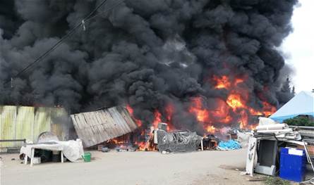 شب حريق نفايات مكدسة في المنطقة الواقعة بين جبل محسن ومنطقة المنكوبين طرابلس.