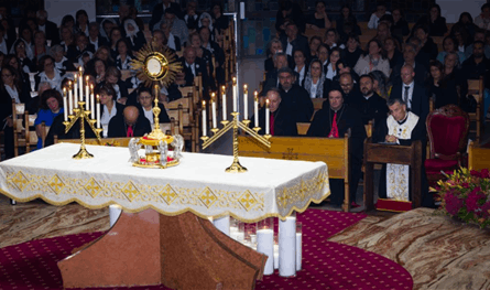 أضاف: “نجمتع الليلة حول المذبح والقربان، وقلوبنا مليئة محبة وأناشيد تهليل وكل شكر للرب المنتصر على الألم والظلمة، والحاضر لكي يعزي شعبه ويشجعه ويبعد من قلبه الخوف حتى يكمل مسيرته نحو الملكوت. صلاتنا الليلة مميزة لأن راعينا، غبطة أبينا البطريرك مار بشارة بطرس الراعي، الصامد بوجه عواصف الشر والحامل صليب شعبه المعذب، معنا. ونصلي معه وله لكي يعطيه الرب الحكمة والقوة والشجاعة لمتابعة قيادة سفينة الكنيسة المارونية في لبنان وأستراليا وكل بلدان الانتشار، لكي يعيش الموارنة شهادتهم وارتباطهم بالانجيل”.
