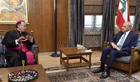 استقبل رئيس مجلس النواب نبيه بري في مقر الرئاسة الثانية في عين التينة، السفير البابوي في لبنان المطران جوزيف سبيتيري، في زيارة وداعية بمناسبة انتهاء مهامه الديبلوماسية في لبنان، وكان اللقاء مناسبة جرى خلاله عرض للاوضاع العامة واخر التطورات .