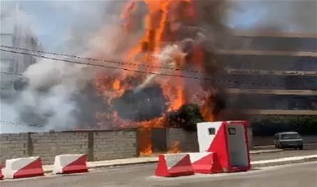 حريق كبير مقابل السفارة الايرانية في بيروت#lebanon24 pic.twitter.com/SqJwtXidJQ