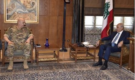وعرض الرئيس بري الأوضاع الامنية وشؤون المؤسسة العسكرية خلال إستقباله قائد الجيش العماد جوزاف عون .