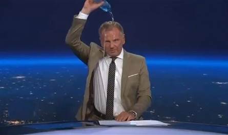 في واقعة غريبة على الهواء، ودّع الإعلامي النمساوي الشهير آرمين فولف، مشاهدي النشرة الإخبارية التي قرأها عليهم بسكب الماء على رأسه.