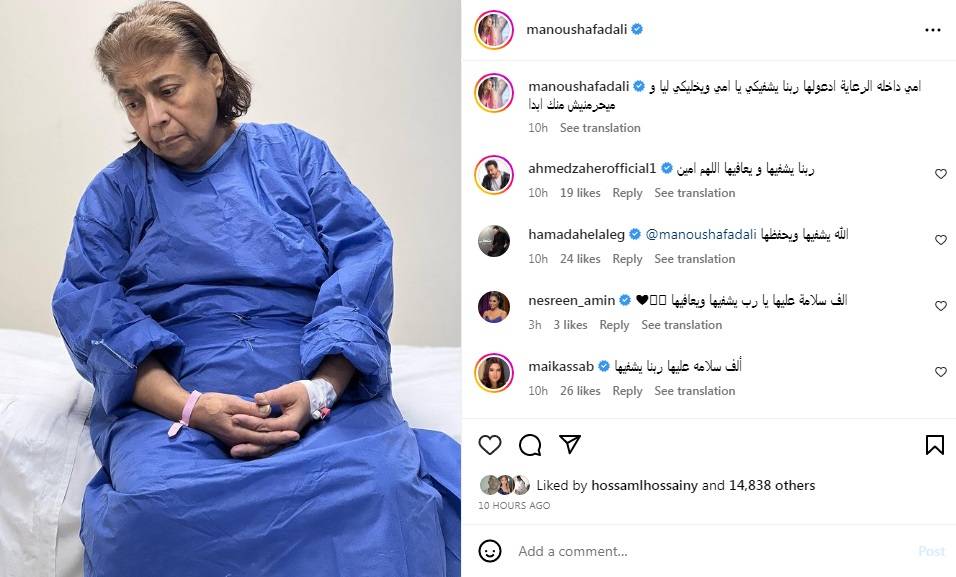 وطالبت منة الجمهور بالدعاء لوالدتها بالشفاء العاجل، ونشرت صورة لوالدتها داخل غرفة المستشفى، وعلقت قائلة: “أمي داخلة الرعاية، ادعولها، ربنا يشفيكي يا أمي ويخليكي ليا وميحرمنيش منك أبداً”.