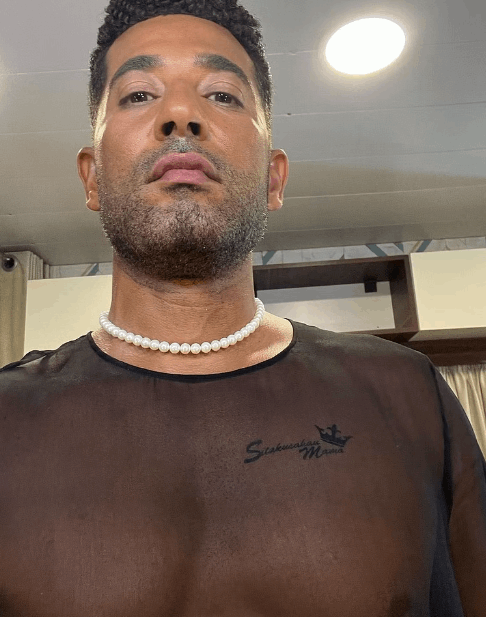 وشارك سعد عبر حسابه في إنستغرام صورة له مرتديًا قميصًا أسود شفافا، كاشفًا عن وشم على صدره، وأكمل إطلالته بقلادة من اللؤلؤ التفّت حول رقبته.