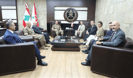 استقبل قائد الجيش العماد جوزاف عون في مكتبه في اليرزة، المستشار الاستراتيجي لبرنامج التعاون الأمني البريطاني المتعلق بمشروع ضبط الحدود الجنرال المتقاعد Gareme Lamb مع وفد مرافق، في حضور السفير البريطاني في لبنان Hamish COWELL.
