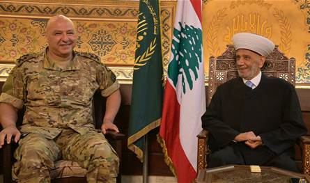 دعا مفتي الجمهورية اللبنانية الشيخ عبد اللطيف دريان الذي استقبل تباعاً قائد الجيش العماد جوزيف عون والمدير العام لقوى الامن الداخلي اللواء عماد عثمان الى «حماية المؤسسات العسكرية والأمنية في لبنان بملء الشواغر في بعض مراكزها لتعزيز عملها المشهود له وعدم التدخل في شؤونها».