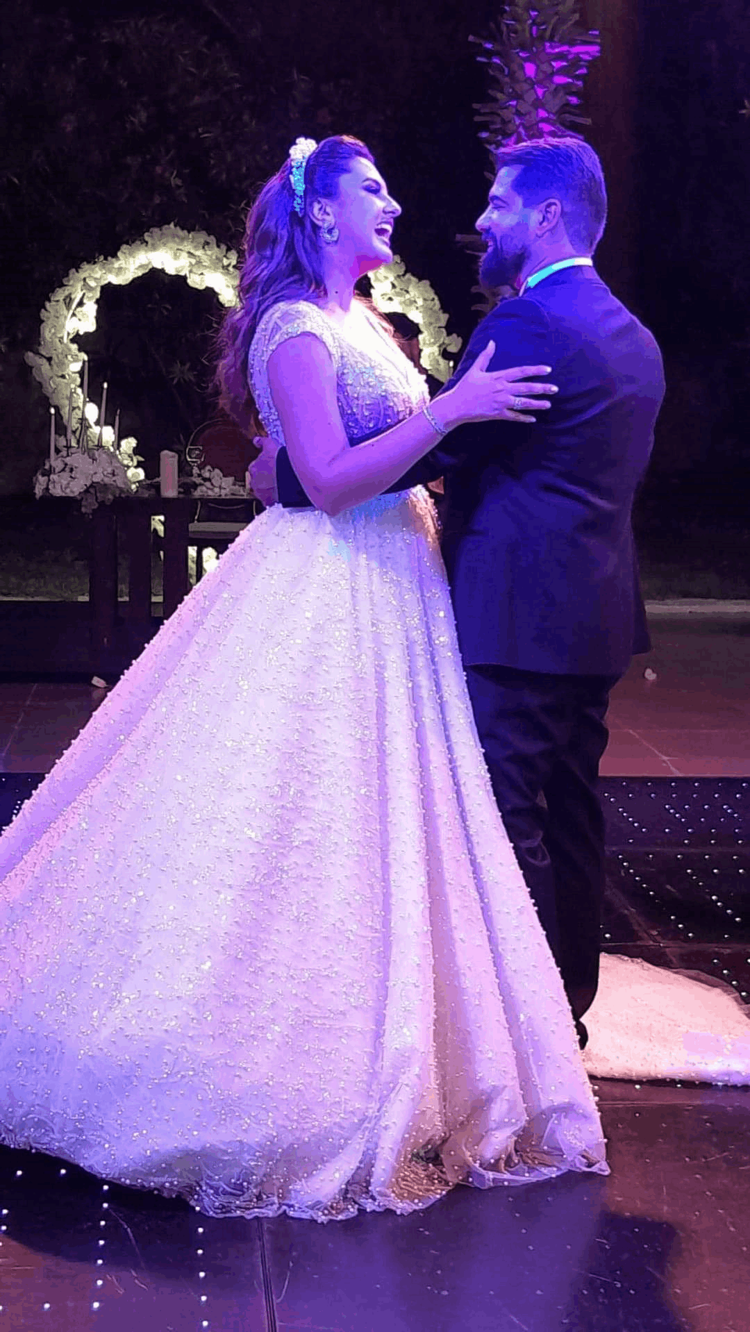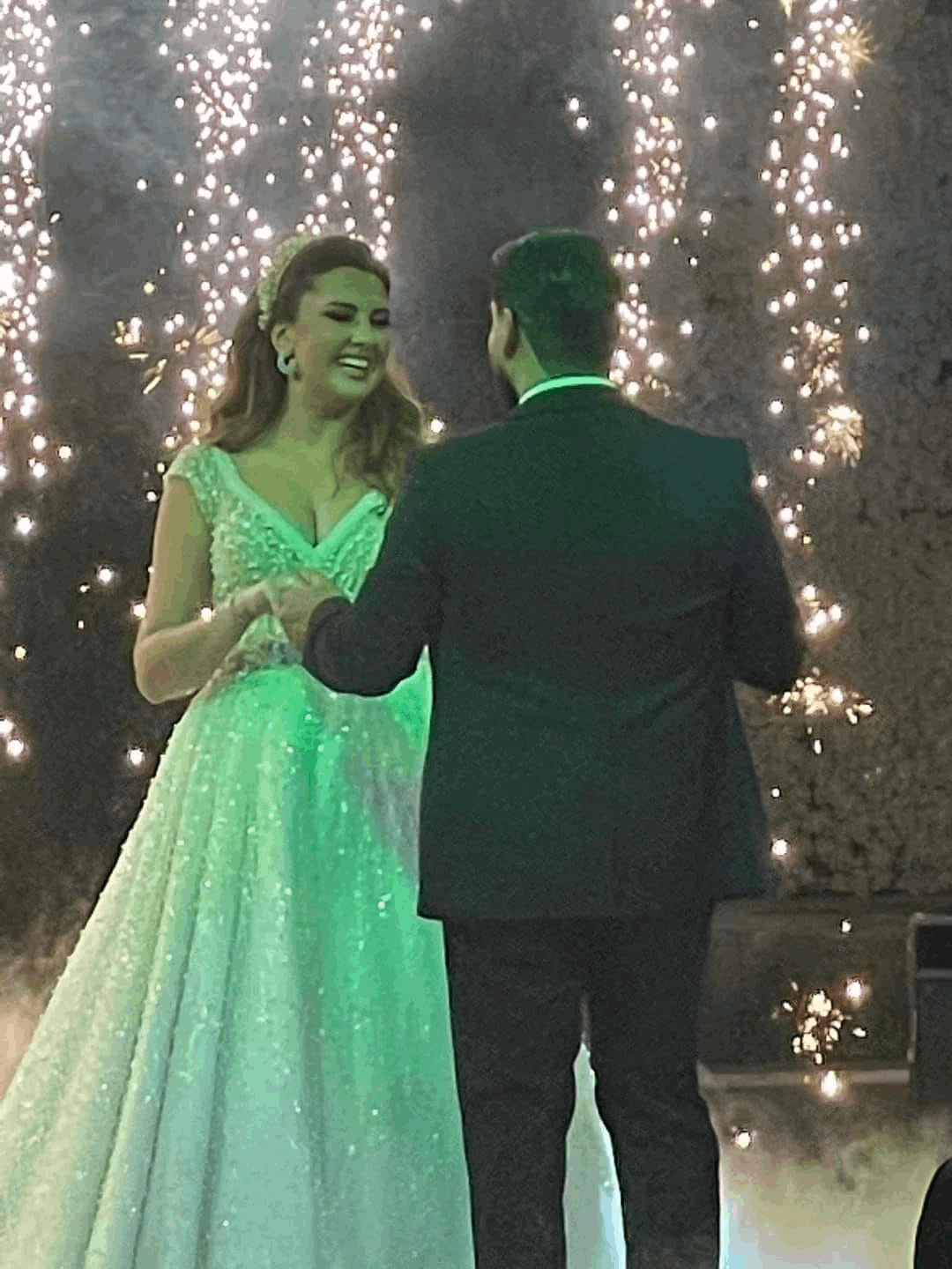 وخطفت ريما أنظار الجميع بفستانها الأبيض، وقد بدت العروس في غاية الجمال في ليلتها.